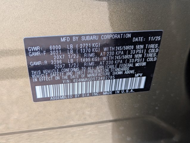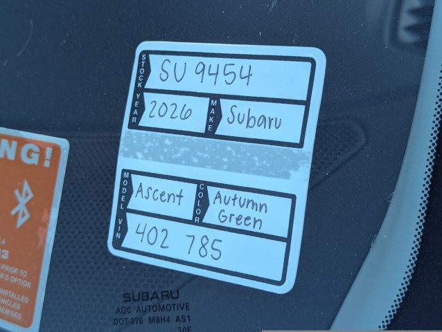 Delivers 25 Highway MPG and 19 City MPG! This Subaru Ascent boasts a Intercooled Turbo Regular Unleaded H-4 2.4 L/146 engine powering this Variable transmission. Wireless Phone Connectivity, Window Grid Antenna, Wheels: 20 x 7.5 J Dk Gray Alloy w/Machine Finish -inc: black wheel center cap w/Subaru 6 star logo.* This Subaru Ascent Features the Following Options *Voice Activated Dual Zone Front Automatic Air Conditioning, Variable Intermittent Wipers w/Heated Wiper Park, Valet Function, Trunk/Hatch Auto-Latch, Trip Computer, Transmission: Lineartronic CVT -inc: high torque, steering wheel paddle-shift control switches, 8-speed manual shift mode and X-MODE dual-mode system w/snow/dirt, deep snow/mud and Hill Descent Control (HDC), Transmission w/Driver Selectable Mode and Oil Cooler, Trailer Wiring Harness, Towing Equipment -inc: Trailer Sway Control, Tires: 245/50R20 102H All-Season.* Stop By Today *Test drive this must-see, must-drive, must-own beauty today at Peoria Subaru, 8590 W Bell Rd, Peoria, AZ 85382.