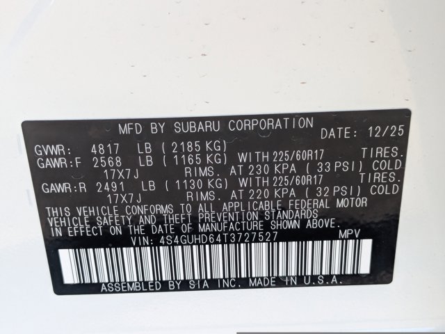 - VIN : 4S4GUHD64T3727527