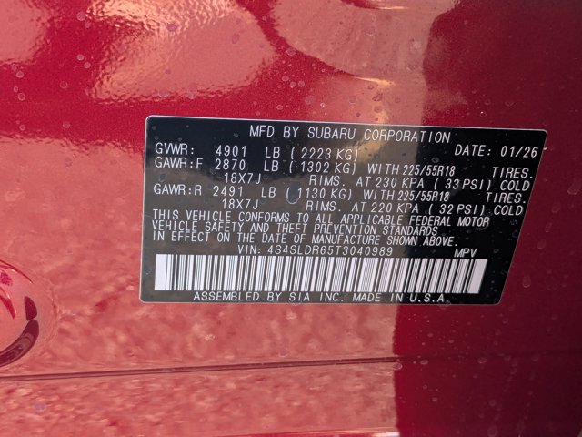 - VIN : 4S4SLDR65T3040989