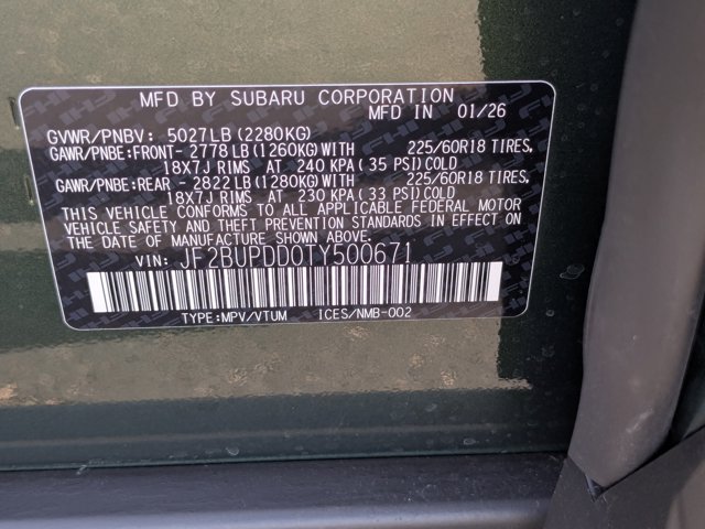 - VIN : JF2BUPDD0TY500671