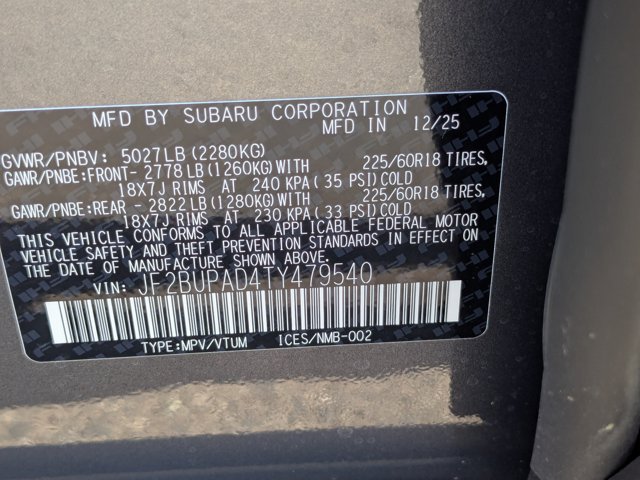 - VIN : JF2BUPAD4TY479540