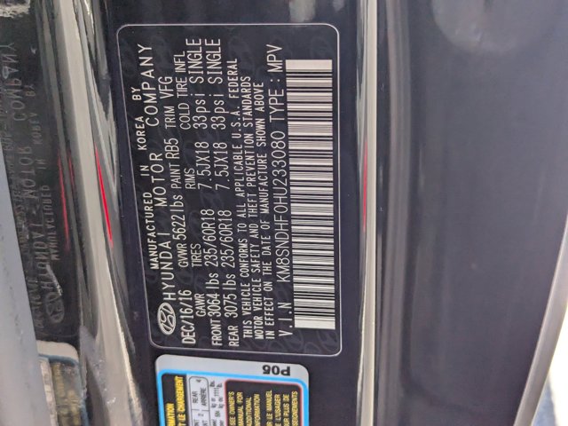 - VIN : KM8SNDHF0HU233080